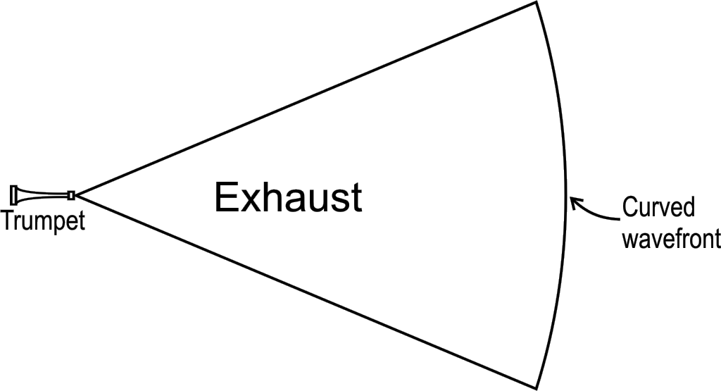 But if she was close, the Finger's exhaust wavefront would still be noticeably curved, like the surface of an expanding balloon. The radius of curvature would equal the distance to the balloon's center at the Finger's mouthpiece.