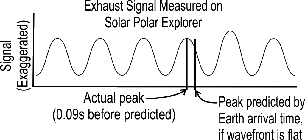 Once Frank timed the pulse arrivals, it took only high-school geometry to predict their time to reach the Solar Polar Explorer, assuming the signal wavefront was flat. When Frank did that, he found the peaks were arriving 90 milliseconds early.